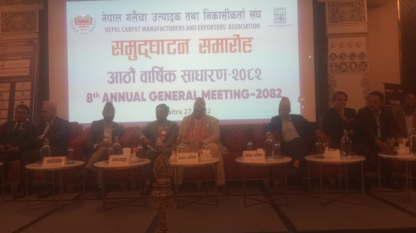 कार्यक्रममा नेपाल गलैँचा उत्पादक तथा निकासीकर्ता संघका अध्यक्ष बलराम गुरुङ्गले विश्व बजारमा नेपाल गलैँचा उत्कृष्ठ भई माग भएता पनि कच्चा पदार्थको अभाव, नीतिगत समस्या, उत्पादनका लागि स्थानको उपलब्धता र दक्ष जनशक्ति अभावका कारण विश्व बजारसाग प्रतिष्पर्धा गर्न नसकेको बताए । उनले सन् १९८० को दशकमा स्वीस सरकारको सहयोगमा युरोप र अमेरिकामा नेपाली गलैचा तथा कार्पेट निर्यातको सुरुवात भएको बताए । उनले १९९०को दशक गलैचा उद्योगका लागि सुलौलो समय भएको स्मरण गर्दै १० लाख मानिलसलाई रोजगार दिएको बताए । यसका साथै उनले ४५ करोड अमेरीकी डलर बराबरको गलैचा निर्यात गर्ने गरेकोे तथ्यांक प्रस्तुत गरे । तर आज ८÷९ करोड अमेरीकी डलर निर्यात गर्दा पनि विदेशी मुद्रा आर्जेन गर्नेमा गलैचा उद्योग अग्रस्थानमा रहेको बताए ।