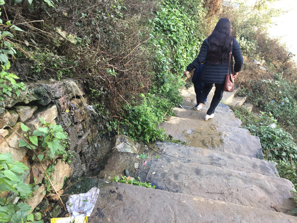 हलचोक मा.वि. र स्थानीय बासिन्दाको फोहोर संकलन गर्ने सेफ्टि ट्यांकीबाट बगेको ढल र जथाभावी फालेका फोहोरले गर्दा उक्त उकालो–ओरालो गर्ने सिडीको बाटो दुर्गन्धित बनाएको हो ।