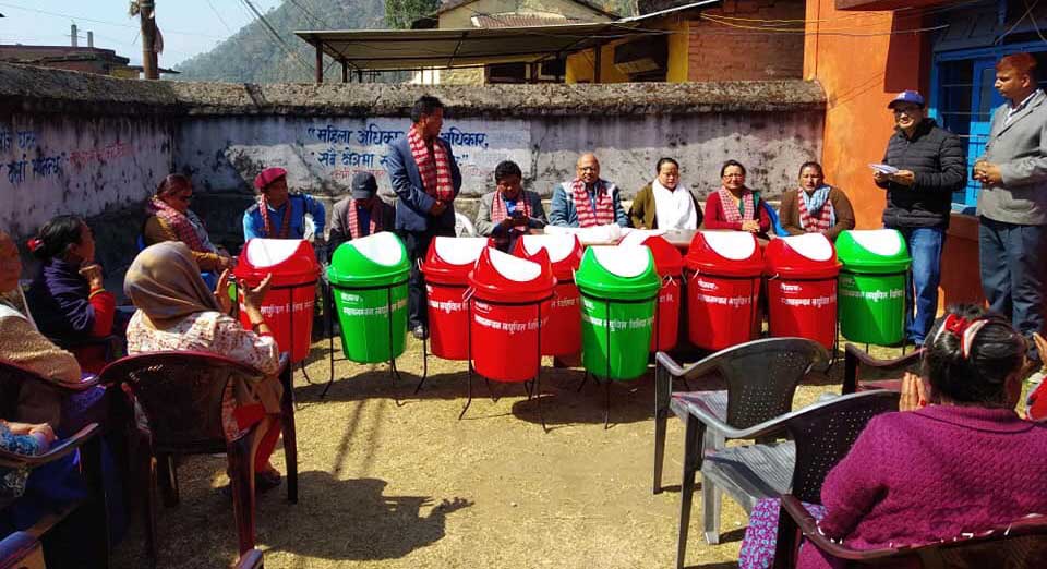 स्वावलम्बन लघुवित्तद्वारा भिमफेदी गाउँपालिकालाई डस्टवीन वितरण