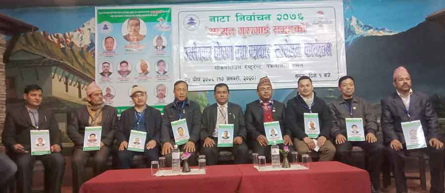काठमाडौं , पुस २५ । नेपाल एसोसिएसन अफ टूर तथा ट्राभल एजेन्ट्स (नाटा)को चुनावका लागि अध्यक्ष पदका उम्मेद्वार अच्युत गुरागाइँसहितको उम्मेदवारी घोषणा भएको छ । गुरागाइँको समूहले शुक्रबार एक कार्यक्रमको आयोजना गर्दै आफ्नो समूहको उम्मेदवारी घोषणा गरेको हो ।