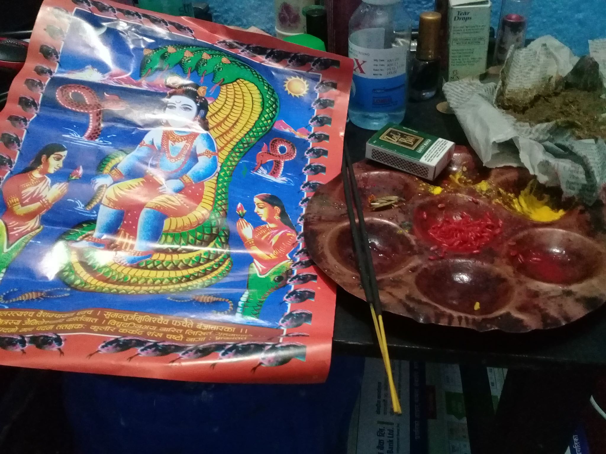 आज नागपञ्चमी: घरका मूलढोकामा नागको तस्वीर टाँसी नाग पूजन गरिदै