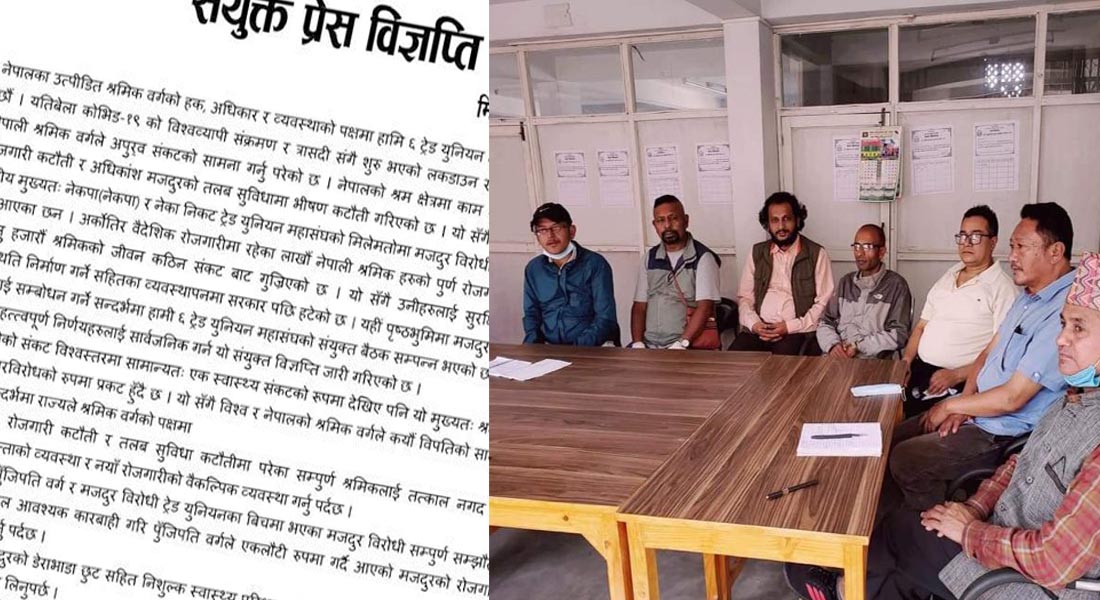 उत्पीडित मजदुरको संकट शीघ्र सम्बोधन गर्न सरकारलाई ५ बुँदे ध्यानाकर्षण: ६ ट्रेड युनियन महासंघले निकाल्यो यस्तो संयुक्त विज्ञप्ति