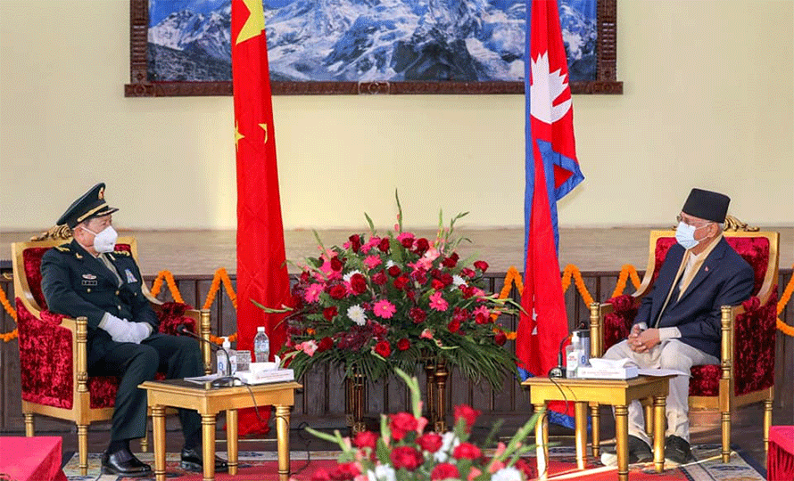 प्रधानमन्त्री ओलीसँग चिनियाँ रक्षामन्त्री वेईको बालुवाटारमा भेटवार्ता