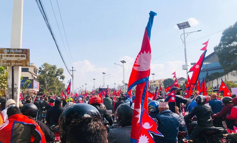 राजतन्त्रको माग गर्दै काठमाडौँमा प्रदर्शन, राजा आऊ, देश बचाऊ नारा