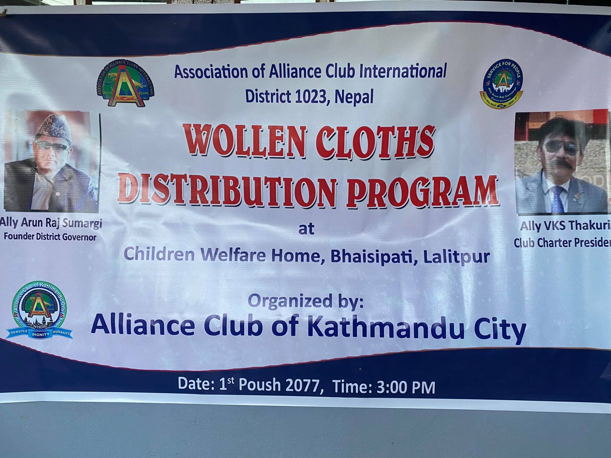 विसुद्ध सामाजीक सेव गर्ने उदेश्यका साथ स्थपना भएको क्लबले सहयोगी हातहरुको माया सहित न्यानो कपडा बितरण कार्यक्रममा एलायन्स क्लब ईन्टरनेशनल डिष्ट्रिक १०२३ नेपाल का सेकेण्ड भिडिजि एलि नन्दराज पोखरेल, थर्ड भिडिजि एलि धना आचार्य, डिष्ट्रिक पि.आ.ओ.सुश्मा कोइराला, क्लब सचिब एलि नबराज श्रेष्ठ, क्ल्वका सदस्य एलि अमित थापा, एलि बिष्णु ठकुरी, एलि सुबर्ण श्रेष्ठ लगायत सम्पुर्ण क्लब पदाधिकारी तथा क्लब सदस्यहरूमा को सहभागिमा रहको थियो ।