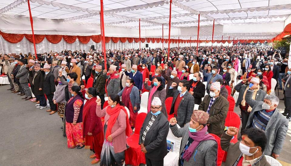 नकपाले राष्ट्रवादी नेतृत्वले चालेका कदमहरूलाई पार्टीले ‘दृढतापूर्वक अघि बढाउने छ उनले भने, ‘कम्युनिष्ट आन्दोलनको एकता, मुलुकमा स्थायित्व र शान्ति तथा राष्ट्रिय हितको पक्षमा अग्रमोर्चामा रहेर भूमिका गरिरहनुभएका नेतृत्वलाई साथ लिन म यहाँ उपस्थित भएको छु । ’