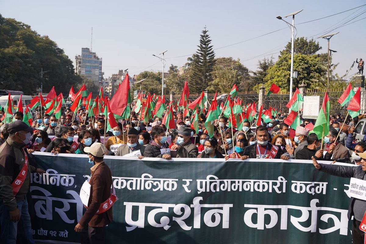 संसद विघटनविरुद्ध काठमाडौंमा जसपाको प्रदर्शन, कदम तत्काल फिर्ता हुनुपर्ने माग (हेर्नुहोस् तस्बिर)