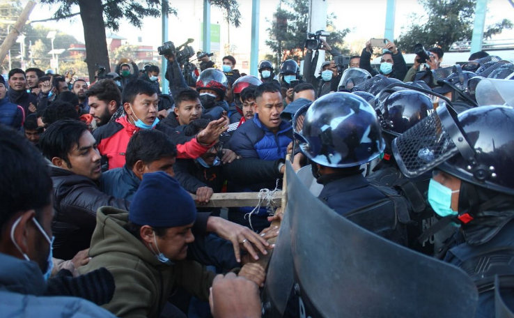 प्रधानमन्त्री ओलीले असंवैधानिक तरिकाबाट प्रतिनिधि सभा विघटन गरेको भन्दै उक्त कदम सच्याउन प्रचण्ड–नेपाल समूहको अनेरास्ववियूले लगातार आन्दोलन गरिरहेको छ ।