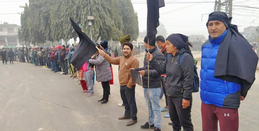 सर्लाहीमा ईश्वर पोखरेलसहित सरकारका तीन मन्त्रीलाई कालो झण्डा
