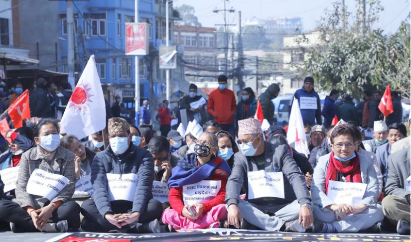 काठमाडौं , माघ १४ । प्रतिनिधि सभा विघटनविरुद्ध प्रचण्ड–माधव पक्षले आन्दोलन गरिरहेको छ । आन्दोलन गर्ने क्रममै माघ १३ गतेबाट तेस्रो चरणका संघर्षका कार्यक्रम जारी राखेको छ । आन्दोलनमा गर्ने क्रममै यो समहुले बुधवार काठमाडौको माइतीघरमा धर्ना दिएको छ ।