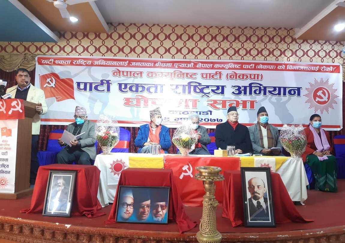 उनले ललितपुरको धोविघाटमा नेकपा एकता अभियानको घोषणाको भेलाको आयोजना गरेका हुन् ।
