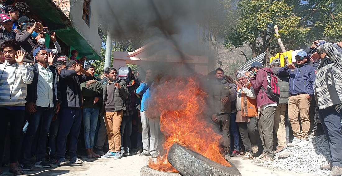 बझाङमा खुँडा प्रहार गरी युवकको हत्या: संलग्नलाई कारबाही गर्न कांग्रेसको माग , बजारमा टायर बाल्दै नाराबाजी