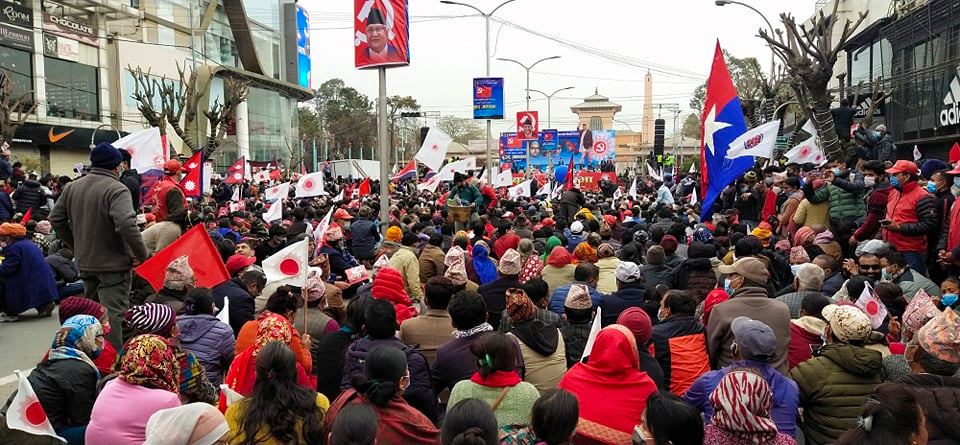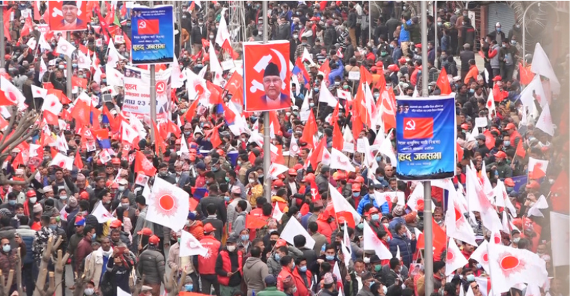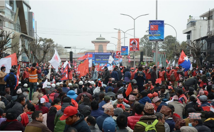 काठमाडौं, माघ २३ । प्रधानमन्त्री ओली समुहले आज काठमाडौंमा बृहत् आमसभाको आयोजना गरेको छ । सभामा जनसागर नै उर्लिएको तस्बिरमा हामी देख्न सक्छौ । आमसभा सुरु हुनुभन्दा पहिला काठमाडौंका १६ स्थानबाट जुलुस निकालीएको थियो ।