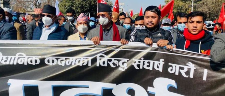 काठमाडौं, माघ २८ । नेपाल कम्युनिष्ट पार्टी (नेकपा) पुष्पकमल दाहाल ‘प्रचण्ड’ र माधवकुमार नेपाल समूहको जुलुस सुरु भएको छ। प्रतिनिधिसभा विघटनको विरोधमा यो समुहले निरन्तर प्रदर्शन गरिरहेको छ ।