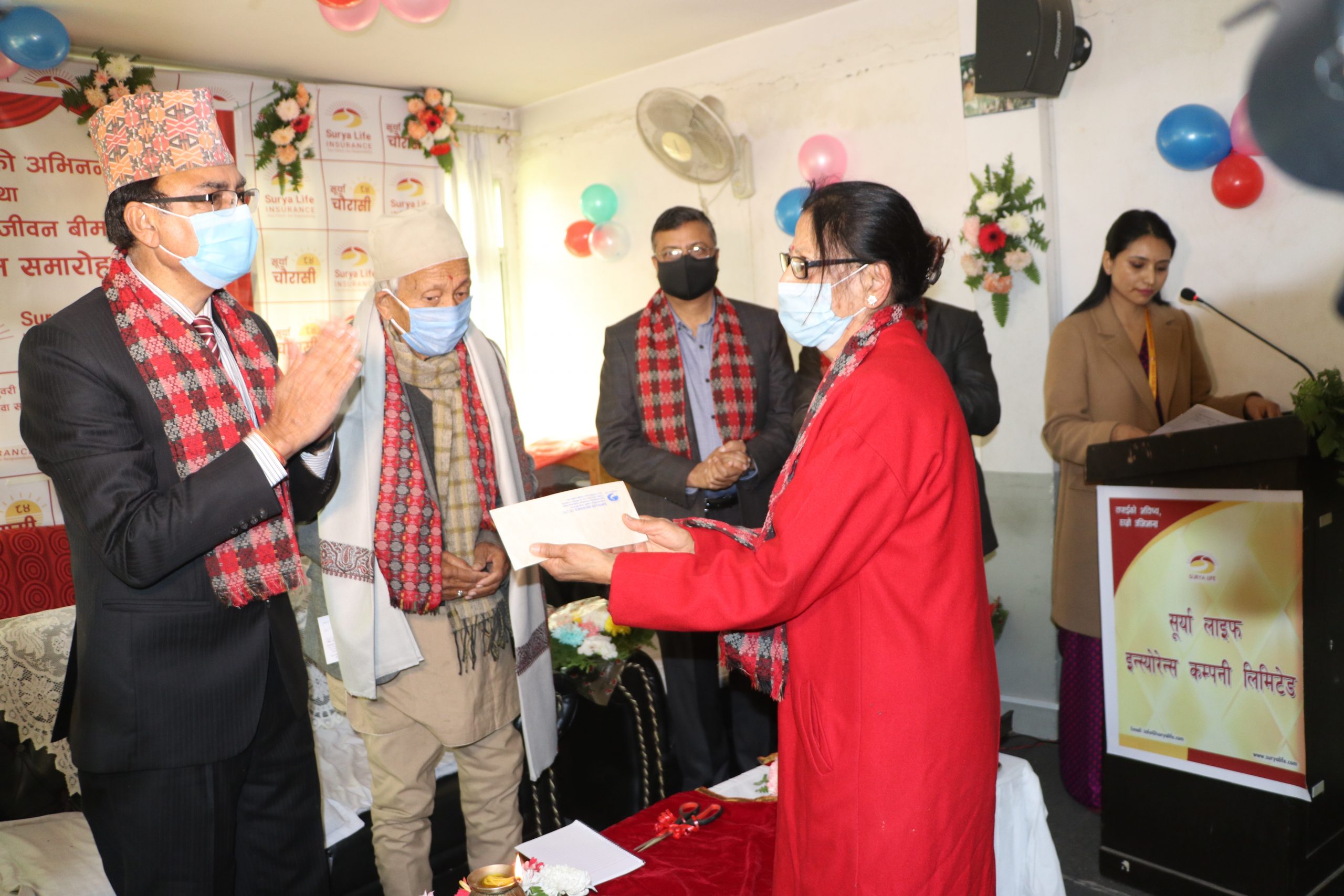 यस्तै कार्यक्रममा सूर्या लाइफइन्योरेन्सका निमित्त प्रमुख कार्यकारी अधिकृति कम्पनीका सिओ कमल कुमार खतिवडाले स्वागत गर्नुका साथै ‘सूर्या चौरासी पुजा ’नामक नयाँ बीमा योजनाका बारेमा प्रकाश पार्नु भएको थियो । प्रमुख खतिवडाले आगामी दिनमा यो योजनामा आफुहरु सधैं प्रयत्नशिल रहने बताउनुभयो ।