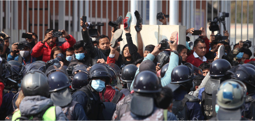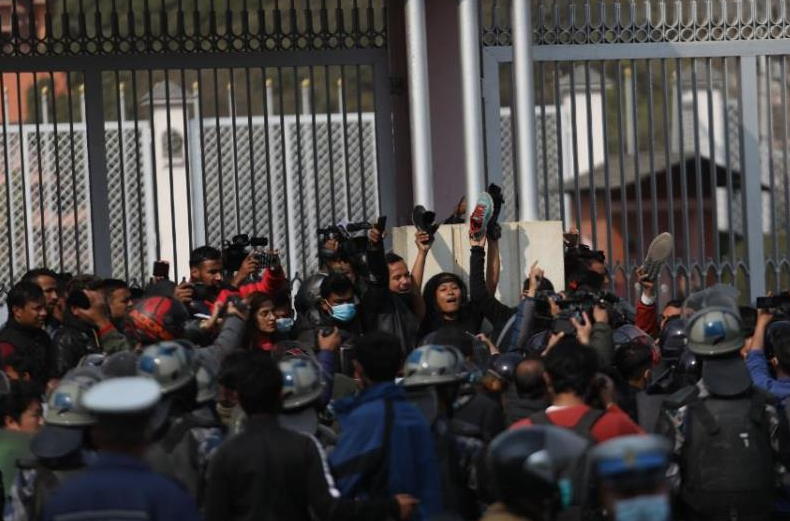 ओलीको प्रतिगमनलाई नारायणहिटीबाट अनेरास्ववियूको जुत्ता प्रहार , संविधानको पालना गर्न आग्रह
