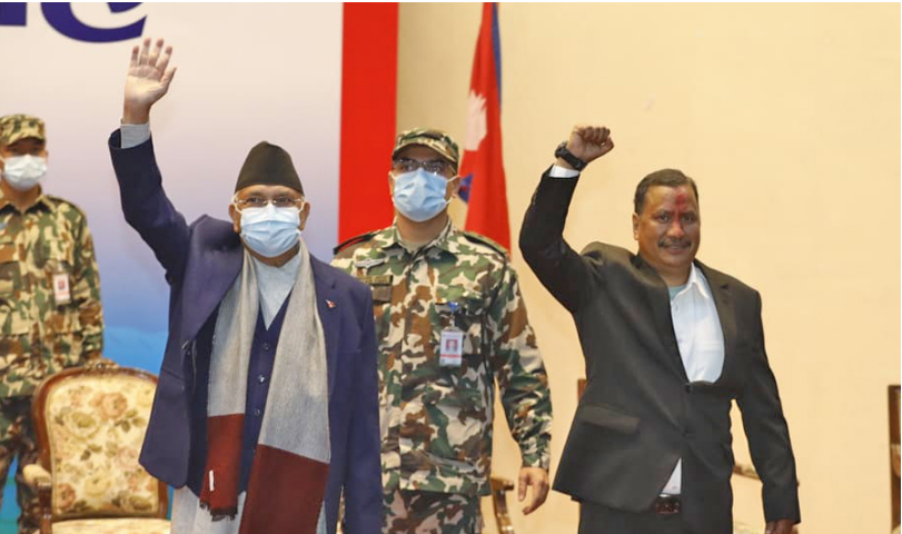 काठमाडौं , फागुन २१ । प्रधानमन्त्री केपी शर्मा ओली र नेकपा विप्लव समूहका महासचिव नेत्रविक्रम चन्द विप्लव एउटै मञ्चमा देखिएका छन् ।