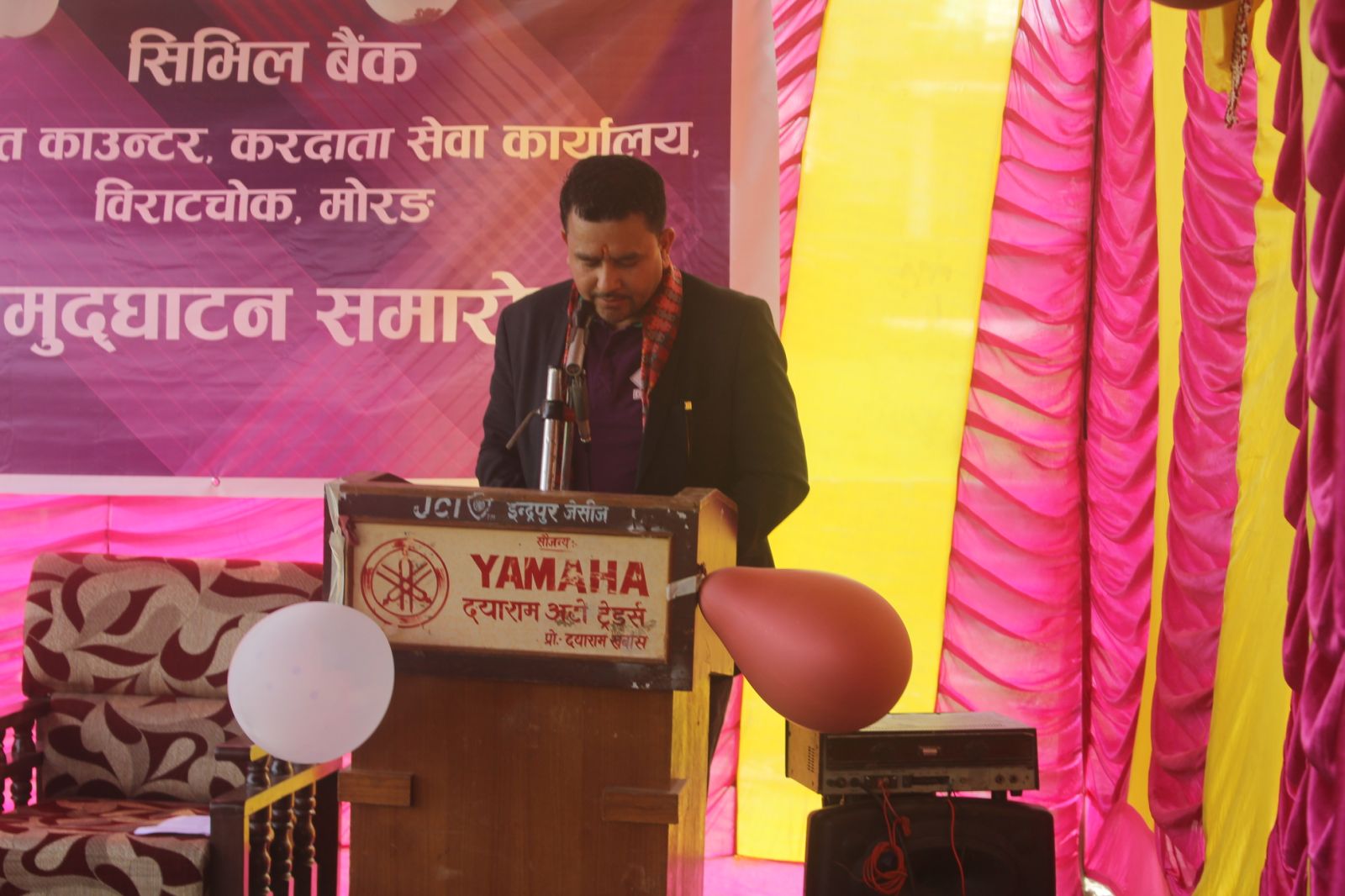 उक्त एक्सटेन्सन काउन्टरको समुद्घघाटन आन्तरिक राजश्व कार्यालय बिराटनगरका प्रमुख बिमल सापकोटाले गर्नु भएको छ ।