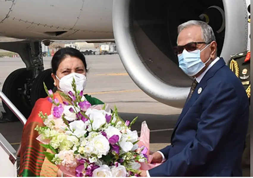 काठमाडौं, चैत ९ । राष्ट्रपति विद्यादेवी भण्डारी दुई दिने राजकीय भ्रमणका क्रममा बंगलादेशको ढाका पुगेकी छन् । पहिलोपटक मित्रराष्ट्र बंगलादेश पुगेकी नेपालकी राष्ट्रपति भण्डारीलाई उनका समकक्षी अब्दुल हमिदले विमानस्थलमै पुगेर पुष्पगुच्छासहित स्वागत गरेका छन्।