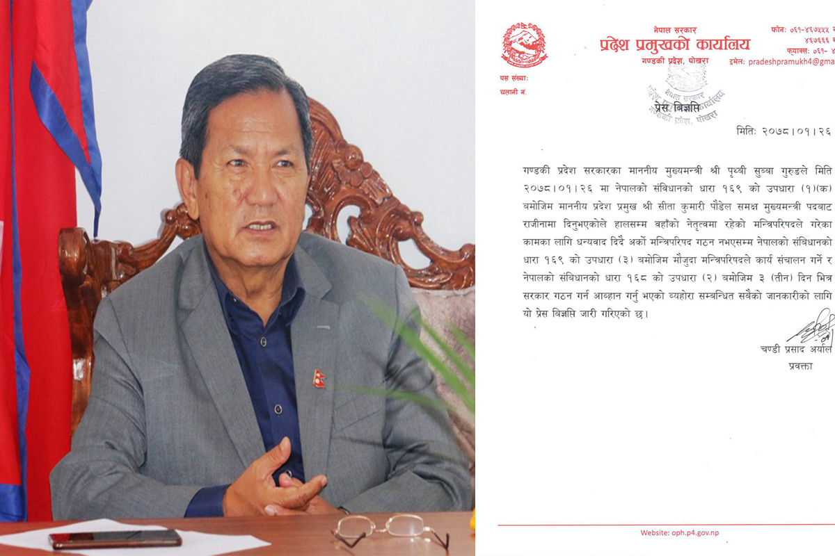 गण्डकीका मुख्यमन्त्री गुरुङको राजीनामा स्वीकृत, नयाँ सरकार गठन गर्न आव्हान