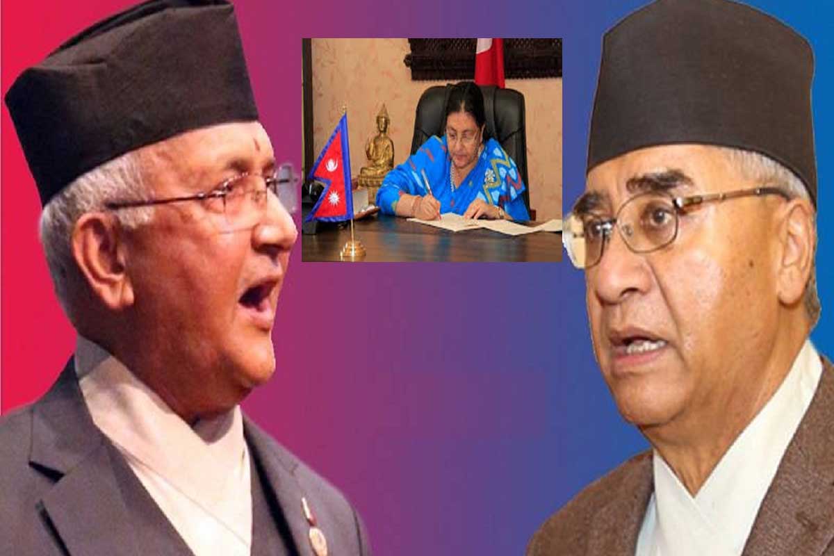 काठमाडौं, जेठ ७ । राष्ट्रपति विद्यादेवी भण्डारी समक्ष नयाँ सरकार गठनका लागि दुईजनाको दाबेदारी पेश भएको छ। प्रधानमन्त्री एवम् नेकपा एमालेका अध्यक्ष केपी शर्मा ओली र नेपाली कांग्रेसका सभापति शेरबहादुर देउवाले राष्ट्रपति समक्ष प्रधानमन्त्रीमा दाबी पेश गरेका हुन्।