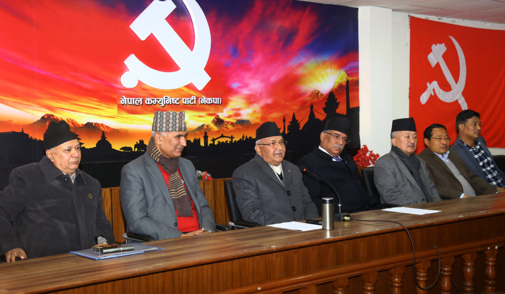 काठमाडौँ, १ पुस । प्रधानमन्त्री एवं नेपाल कम्युनिष्ट पार्टी (नेकपा) का अध्यक्ष केपी शर्मा ओलीले दुई अध्यक्ष मिलेर पार्टी चलाई संसारकै नमूना तरिकाले काम गरेको बताउनु भएको छ । तत्कालीन एमाले