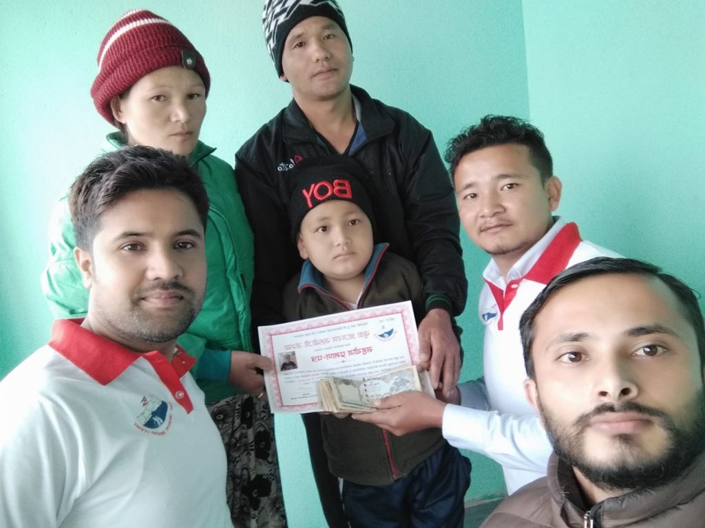 काठमाडौं । युवाजागरण सहयोगी संस्थाले ब्लडक्यान्सरबाट पीडित ९ वर्षिय बालक सोनाम शेर्पालाई सहयोगार्थ रु ७४ हजार रुपैया हस्तान्तरण गरेको छ । संस्थाले एक कार्यक्रमबीच ताप्लेजङ जिल्ला मेरिङ्देन गाउँपालिका वडा नं.