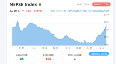 सेयर बजार २७१९ अंकमा झर्यो, बढ्यो कारोबार