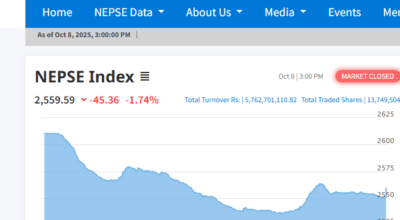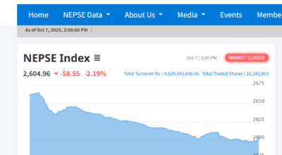 नेप्से परिसूचकमा भारी गिरावट, कारोबार रकम भने बढ्यो