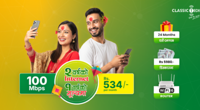 क्लासिक टेकको दशैँ अफर: “२ वर्ष को इन्टरनेट १ वर्ष को मूल्यमा”