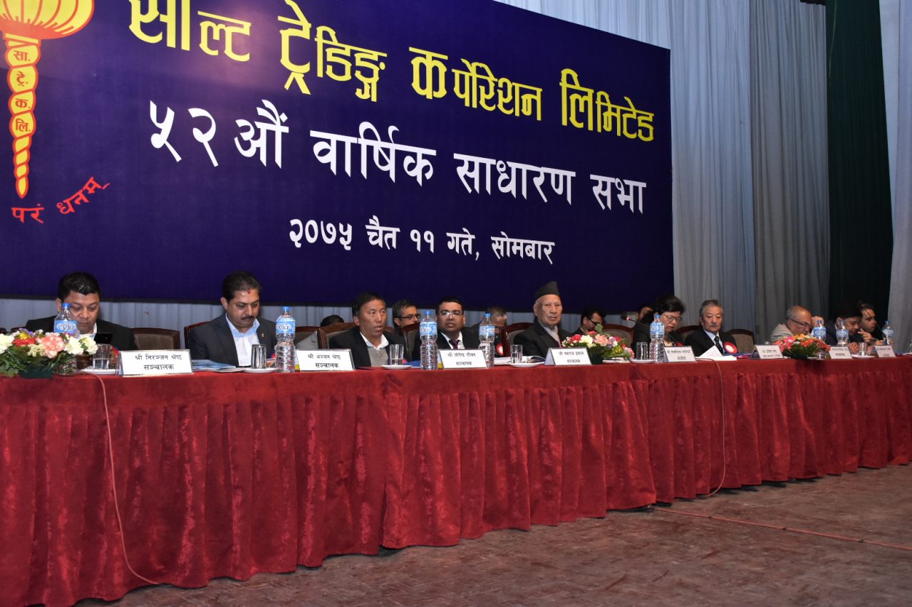काठमाडौं । साल्ट ट्रेडिङ्ग कर्पोरेशन लिमिटेडको ५२ औं वार्षिक साधारणसभा आज सम्पन्न भयो । उक्त