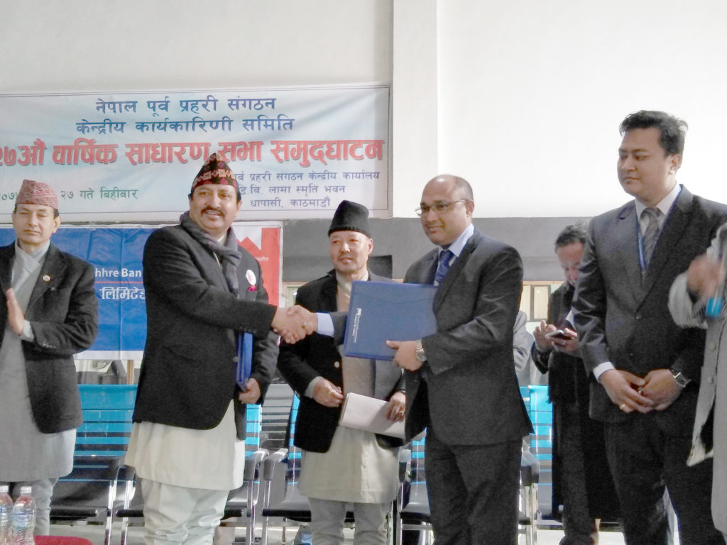 माछापुच्छ्रे बैंक र नेपाल पूर्व प्रहरी संगठनबीच सम्झौता , प्रहरीले पेन्सनपट्टा धितो राखी कर्जा लिनपाउने