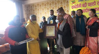 काठमाडौं, २२ पुस । मानव अधिकार तथा शान्ति समाजद्वारा स्थापित ‘कर्मयोगी बद्री पहाडी समाजसेवा पुरस्कार‘