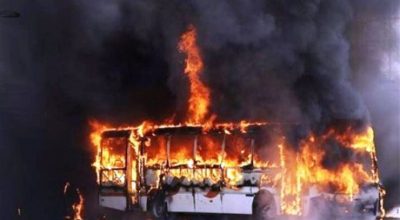 अज्ञात समूहबाट बसमा आगजनी, बस जलेर नष्ट