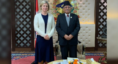 बेलायती राजदूत पाेलिट र प्रधानमन्त्री दाहाल बीच भेट