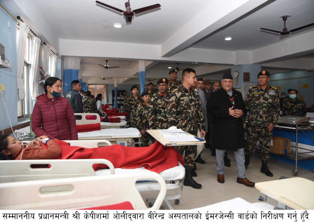 प्रधानमन्त्री वीरेन्द्र अस्पतालको निरीक्षणमा