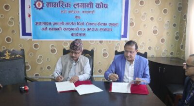काठमाडौं । नागरिक लगानी कोष र भूमि व्यवस्थापन तथा अभिलेख विभागबीच अनलाइन प्रणालीमार्फत धितो रोक्का