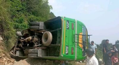 पोखरामा बस दुर्घटना, चालक सहित २२ यात्रु घाइते
