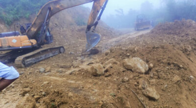 दुम्कीबासमा डाइभर्सन बगाउँदा राजमार्ग अवरुद्ध