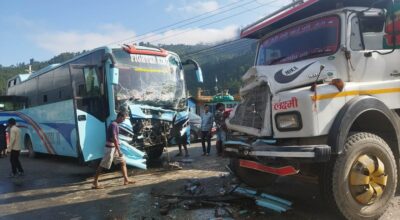 धादिङमा बस र टिपर ठोक्किएका छन् ।