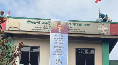 नेपाली कांग्रेस केन्द्रीय कार्यालयमा पार्टीको झण्डा र ब्यानर राखे