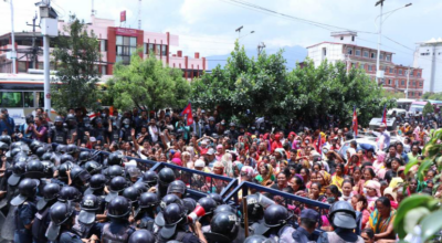 नयाँ बानेश्वरमा लघुवित्तीय संस्थाविरुद्ध प्रदर्शन, पीडित र प्रहरीबीच झडप