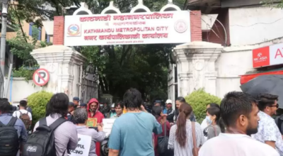 साना ब्यापारीलाई दुःख दिएको भन्दै काठमाडौं महानगरपालिका अगाडी प्रदर्शन