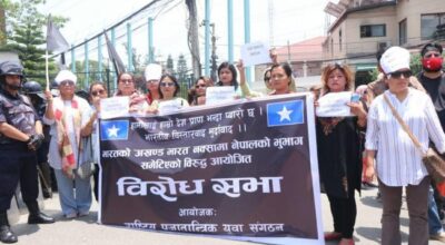 अखण्ड भारत नक्सामा नेपालको भूमि समेटिएको विरोधमा दुतावास अगाडि प्रदर्शन
