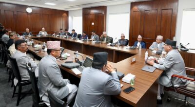 काठमाडौं, जेठ ५ । राष्ट्रपति रामचन्द्र पौडेल प्रधानमन्त्री पुष्पकमल दाहाल ‘प्रचण्ड’ को सरकारको पहिलो बैठकले