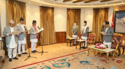 काठमाडौं, बैशाख २१ । नव नियुक्त तीन मन्त्रीले पद तथा गोपनीयताको शपथ लिएका छन् ।