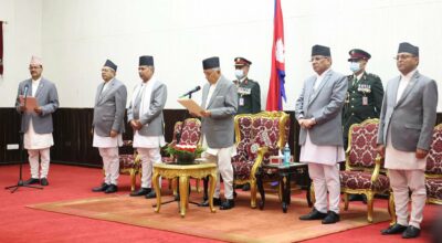 काठमाडौं, बैशाख ३ । परराष्ट्रमन्त्री एनपी साउदले पद तथा गोपनीयताको शपथ लिएका छन्। आइतबार राष्ट्रपति