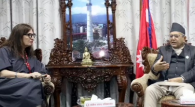 सभामुख घिमिरे र अन्तराष्ट्रिय रेडक्रस प्रतिनिधि कुम्पुलाबीच भेटवार्ता