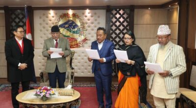 काठमाडौं , फागुन ४ । नवनियुक्त ३ जना कुलपतिहरुले पद तथा गोपनियताको सपथ ग्रहण गरेका
