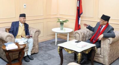 प्रधानमन्त्री प्रचण्ड र एमाले अध्यक्ष ओलीबीच भेटवार्ता